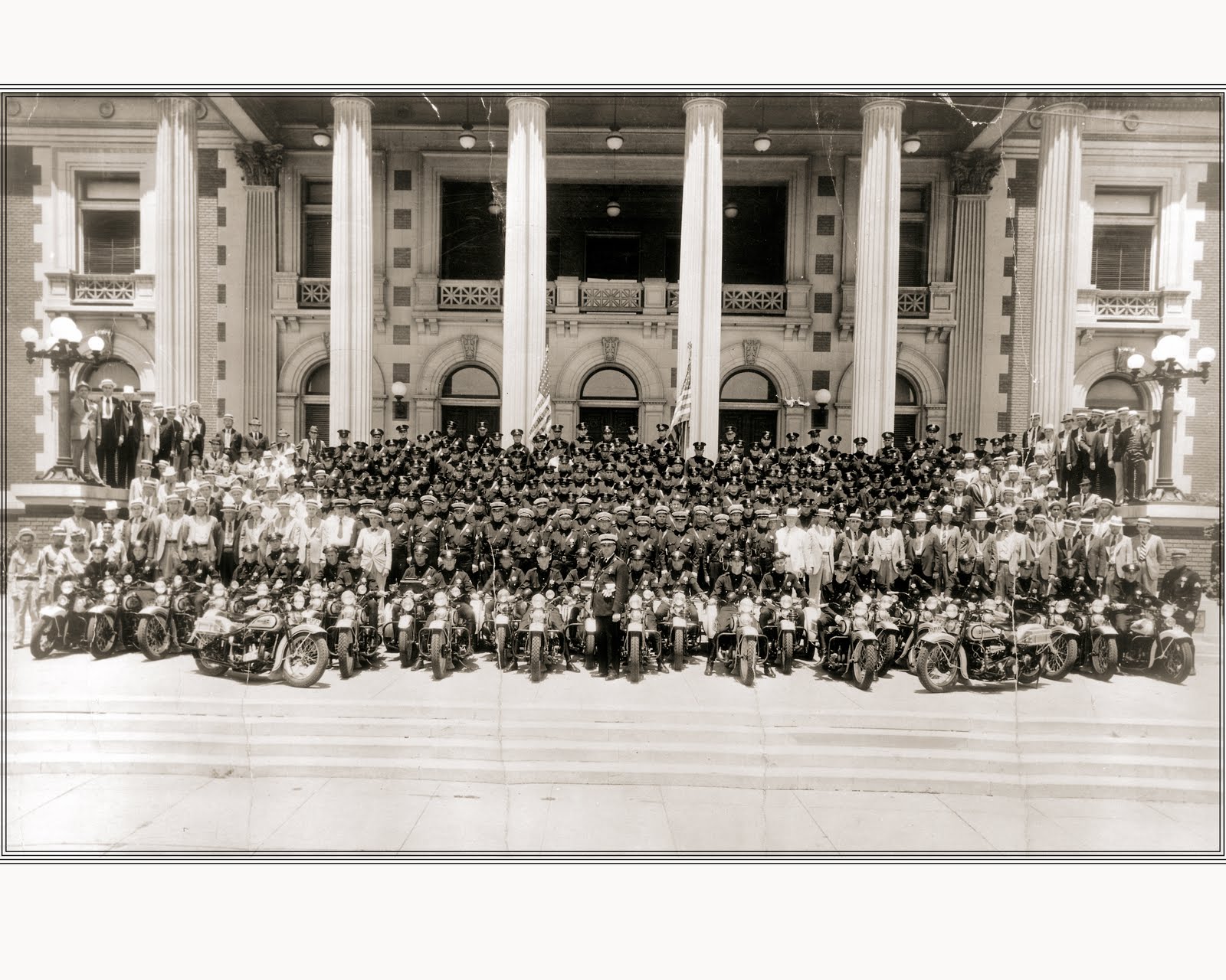 Picture; Dallas Police Department before the 1936 Texas Centennial at Fair Park. The Scottish Rite building at Young and Harwood Streets, is still there.