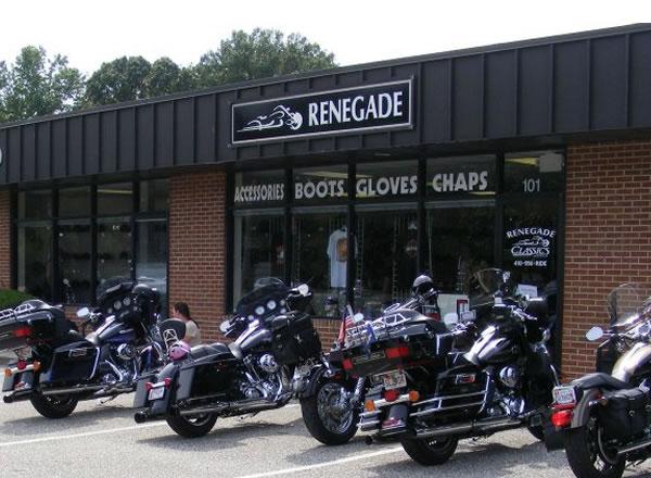Renegade Classics is a locally owned motorcycle gear and accessory shop in Edgewater Maryland.