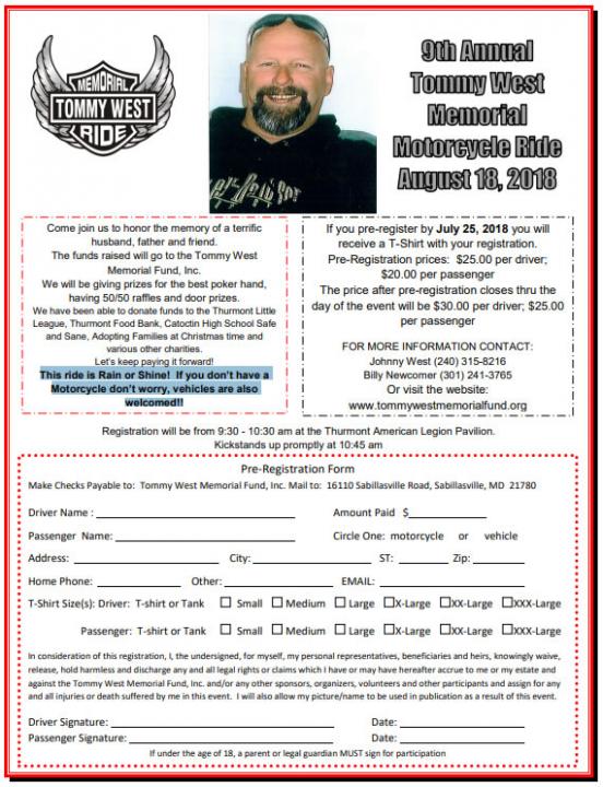 9th Annual Tommy West Memorial Ride