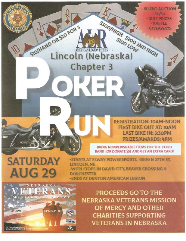 AMERICAN LEGION RIDERS LINCOLN NEBRASKA CHAPTER 3 POKER RUN