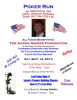 3rd Annual Aaron Grider Foundation Poker Run is Sept. 14. Sign up is at The Hawg Pit in grafton from 10 am til Noon.