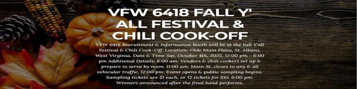 Veterans of Foreign Wars ("VFW") Nationally Chartered VFW Riders Group. Chartered 23 April 2025. Located in St. Albans, West Virginia. Owned, licensed, and operated by veterans of West Virginia VFW Post 6418 of St. Albans, West Virginia 25177. Riding our motorcycles and hosting community events. More information at various "VFW Riders Group" websites. VISIT OUR NEXT EVENT WEBSITE: https://vfw6418.org/di/vfw/v2/default.asp